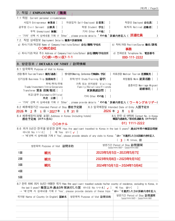 〈8.6〉韓国に旅行した履歴を記載します。入りきらない場合は、直近で大丈夫です!
