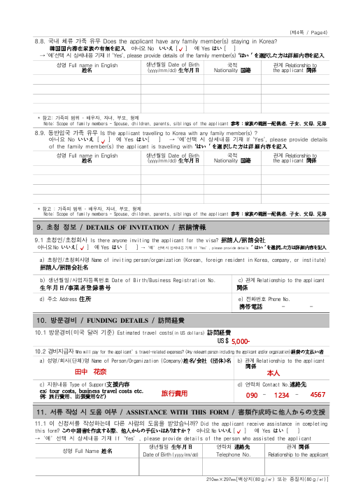 ビザ申請書自体、英語と韓国語、日本語で表記されていることがほとんどかと思います。